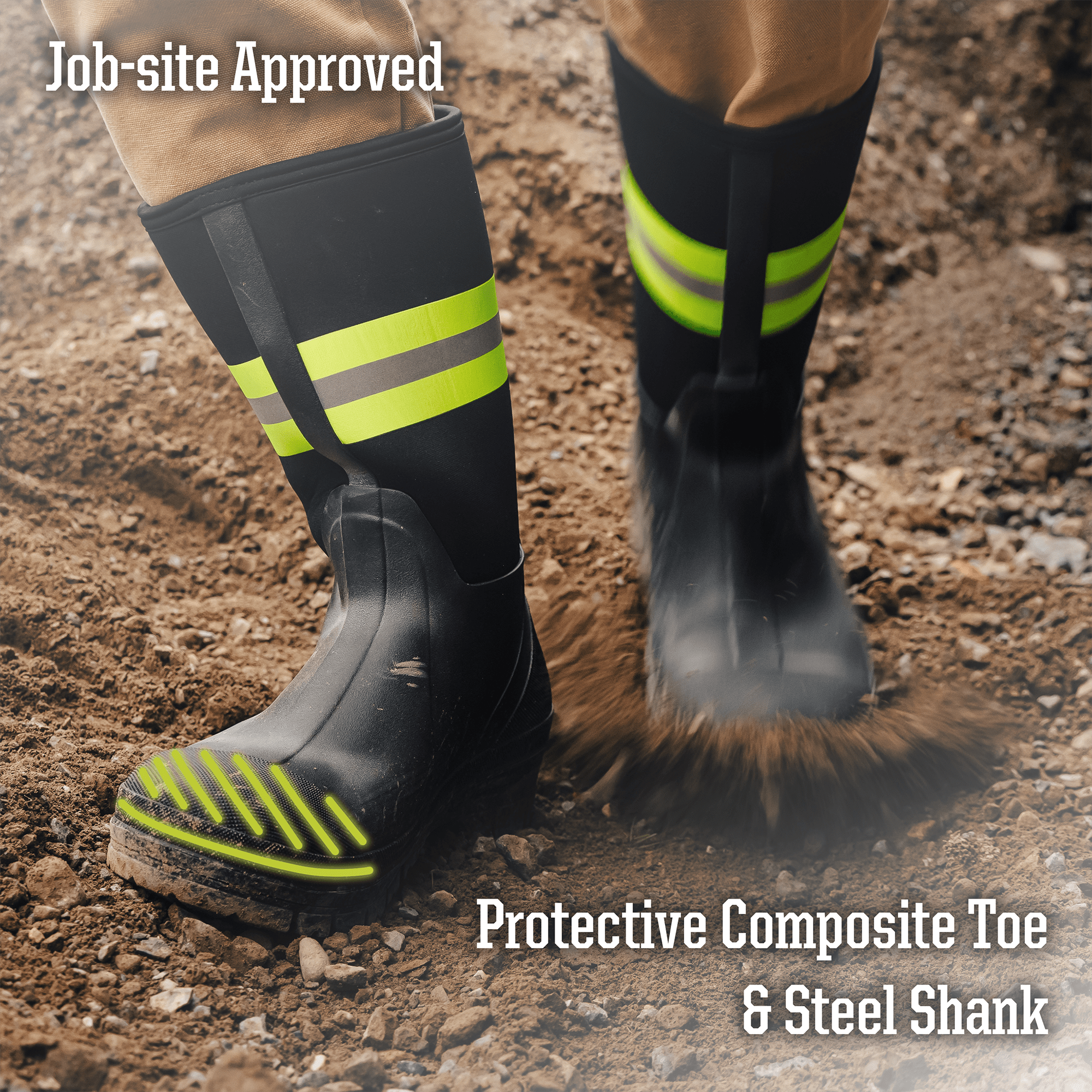 - Composite toe with steel shank offers added safety and support for rugged environments.