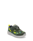 Our Kids Lighted Flash Feet Sneaker with a dinosaur print features bright, fun lights with durable mesh construction and easy hook & loop closure, designed for active play and self-dressing skills.